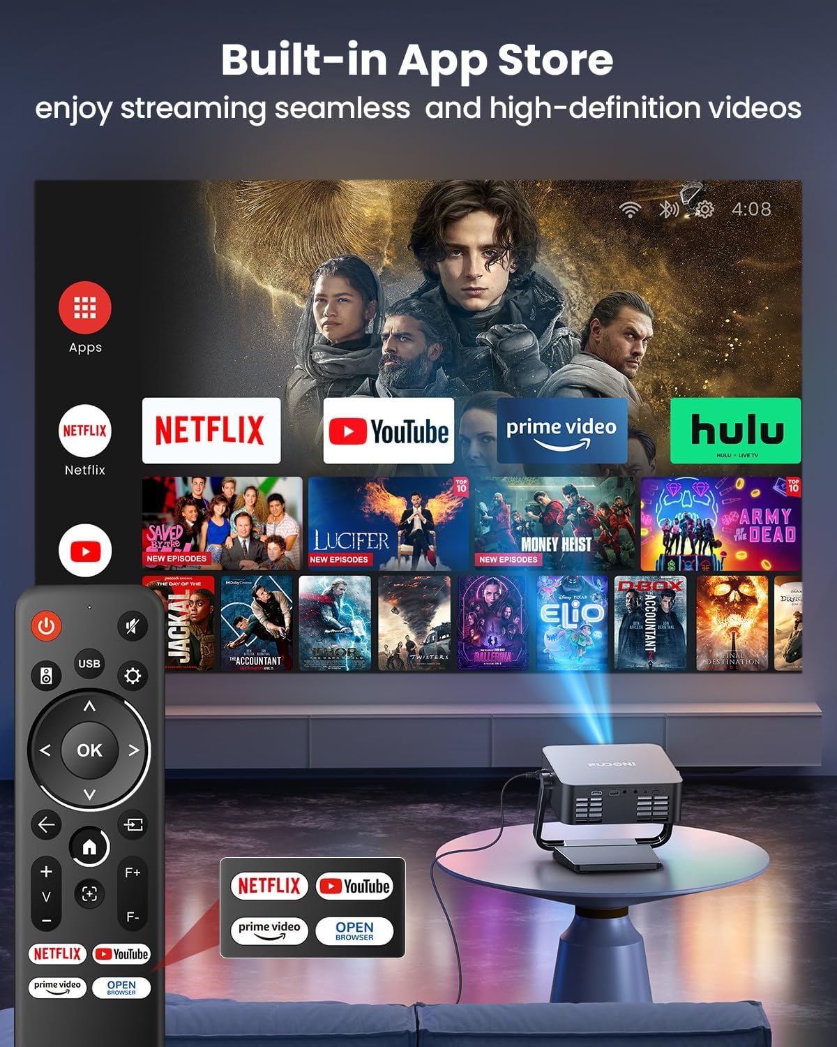 - Netflix Licensed, Enjoy Seamless Streaming: Officially licensed by Netflix, FUDONI smart projector supports over 1,000,000 videos and other steaming app, allowing you to stream your favorite shows and movies seamlessly. Need more apps? Just download them online with fingertips, ensuring convenience and no need for external devices. One Netflix projector turns your home and backyard into a theater, enjoy endless movie at all time. Compatible with Dolby sound, the video projector enhances your sound experience with clear, rich, and immersive audio quality.